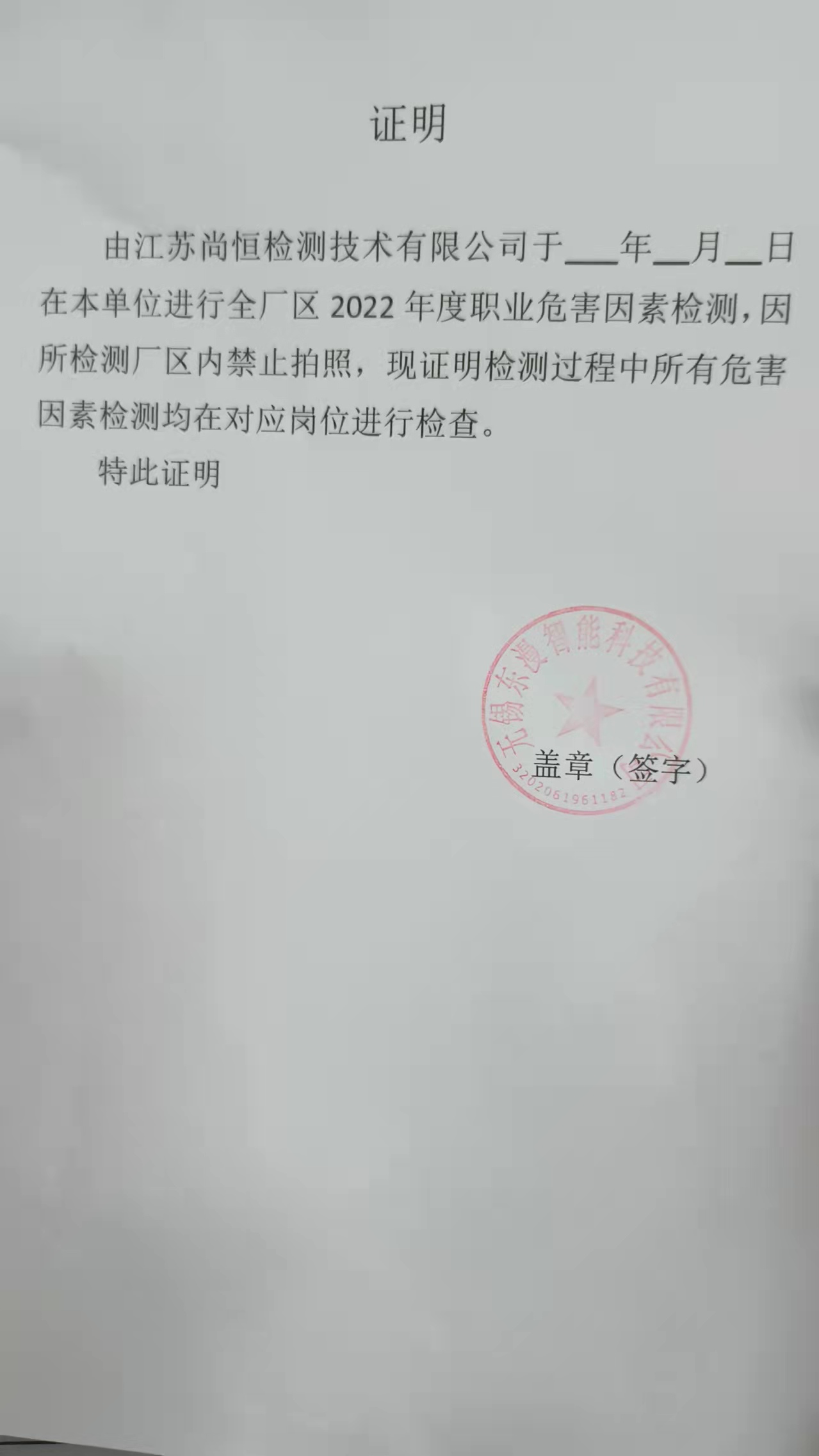 用人單位名稱 無錫久高機械有限公司 用人單位注冊地址 無錫市胡埭鎮景天路8號 聯系人 熊燕燕 報告名稱及編號 職業病危害因素檢測報告 Z20251169 項目組人員 丁文輝、郭佳、崔琳杰、朱娟 現場調查人員 丁文輝、郭佳 現場調查時間 2025年11月19日 用人單位陪同人 熊燕燕 采樣與測量人員 崔琳杰、朱娟 采樣與測量時間 2025年11月28日 用人單位陪同人 熊燕燕 現場照片(現場調查及現場采樣與測量照片,含企業名稱或標識的合影照片) ? ? ? ? ?...