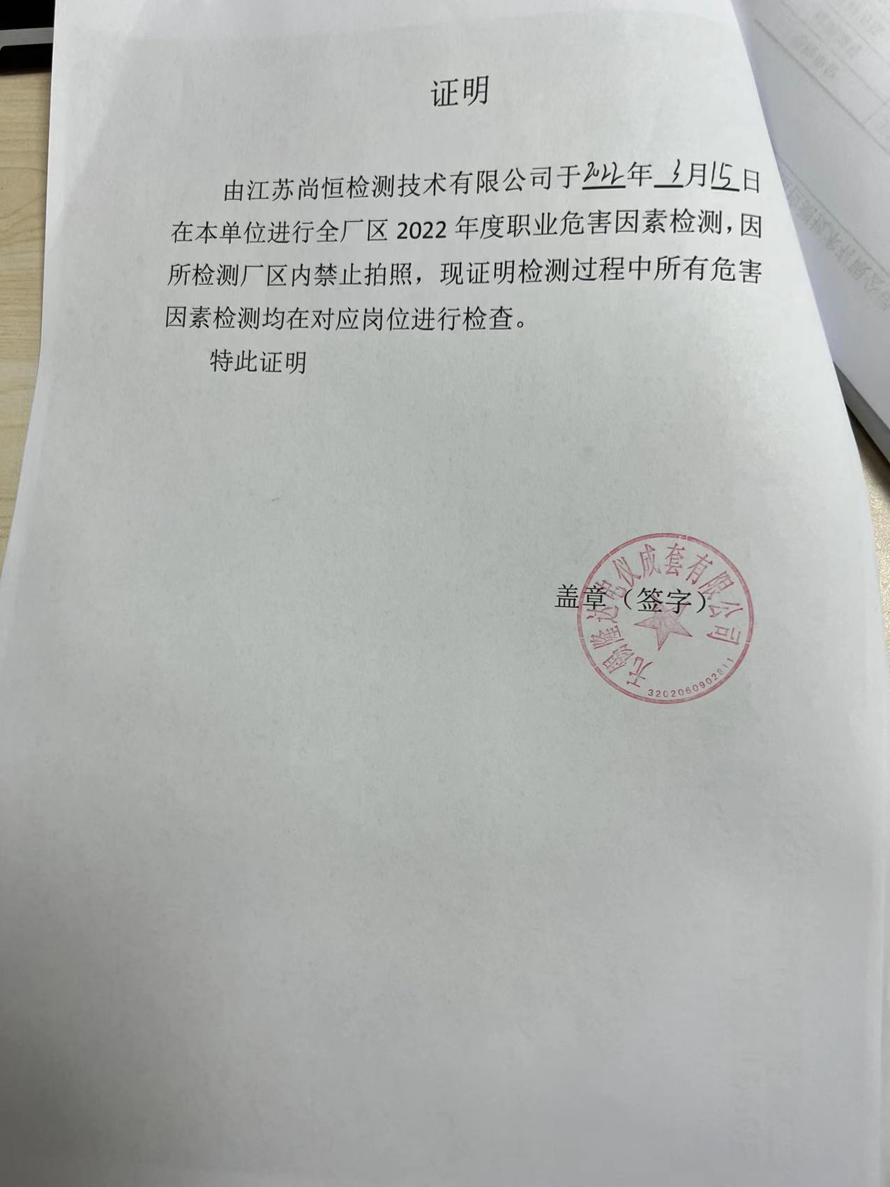用人單位名稱(chēng) 無(wú)錫市恒樂(lè)新材料科技有限公司 用人單位注冊(cè)地址 無(wú)錫市錫山區(qū)東北塘街道東飛路9號(hào) 聯(lián)系人 盧山 報(bào)告名稱(chēng)及編號(hào) 職業(yè)病危害因素檢測(cè)報(bào)告 Z20251174 項(xiàng)目組人員 耿朔辰、方佐、華佳鋮、趙婕 現(xiàn)場(chǎng)調(diào)查人員 耿朔辰、方佐 現(xiàn)場(chǎng)調(diào)查時(shí)間 2025年11月12日 用人單位陪同人 盧山 采樣與測(cè)量人員 華佳鋮、趙婕 采樣與測(cè)量時(shí)間 2025年11月27日 用人單位陪同人 盧山 現(xiàn)場(chǎng)照片(現(xiàn)場(chǎng)調(diào)查及現(xiàn)場(chǎng)采樣與測(cè)量照片,含企業(yè)名稱(chēng)或標(biāo)識(shí)的合影照片) ? ? ? ? ?...