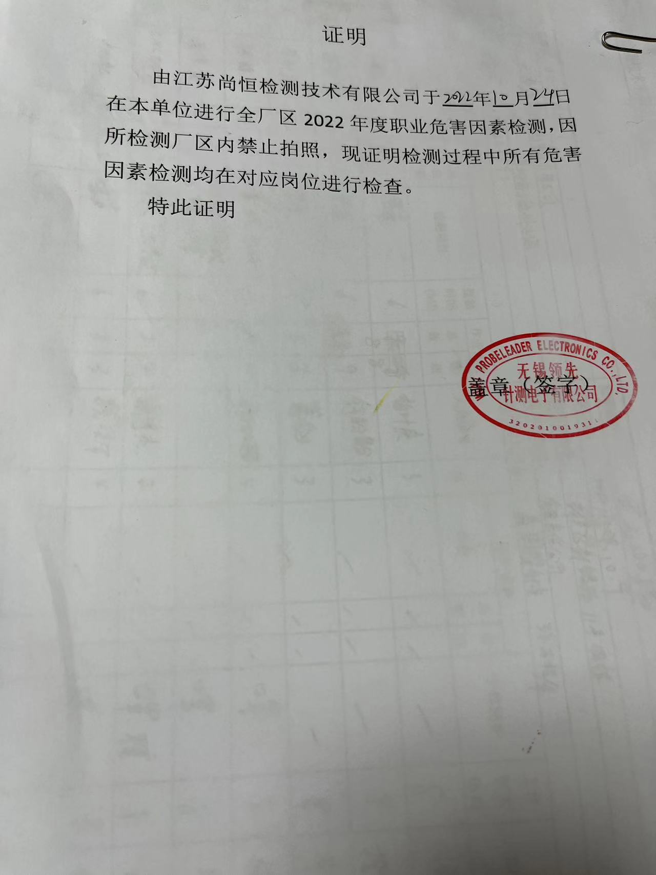 用人單位名稱 無錫協鑫塑料制品有限公司 用人單位注冊地址 無錫市錫山區鵝湖鎮彩橋村甘東路10號 聯系人 范少華 報告名稱及編號 職業病危害因素檢測報告 Z20250996 項目組人員 郭佳、羅燕平、周康、尚志華 現場調查人員 郭佳、羅燕平 現場調查時間 2025年10月24日 用人單位陪同人 范少華 采樣與測量人員 周康、尚志華 采樣與測量時間 2025年11月24日 用人單位陪同人 范少華 現場照片(現場調查及現場采樣與測量照片,含企業名稱或標識的合影照片) ? ? ? ? ?...