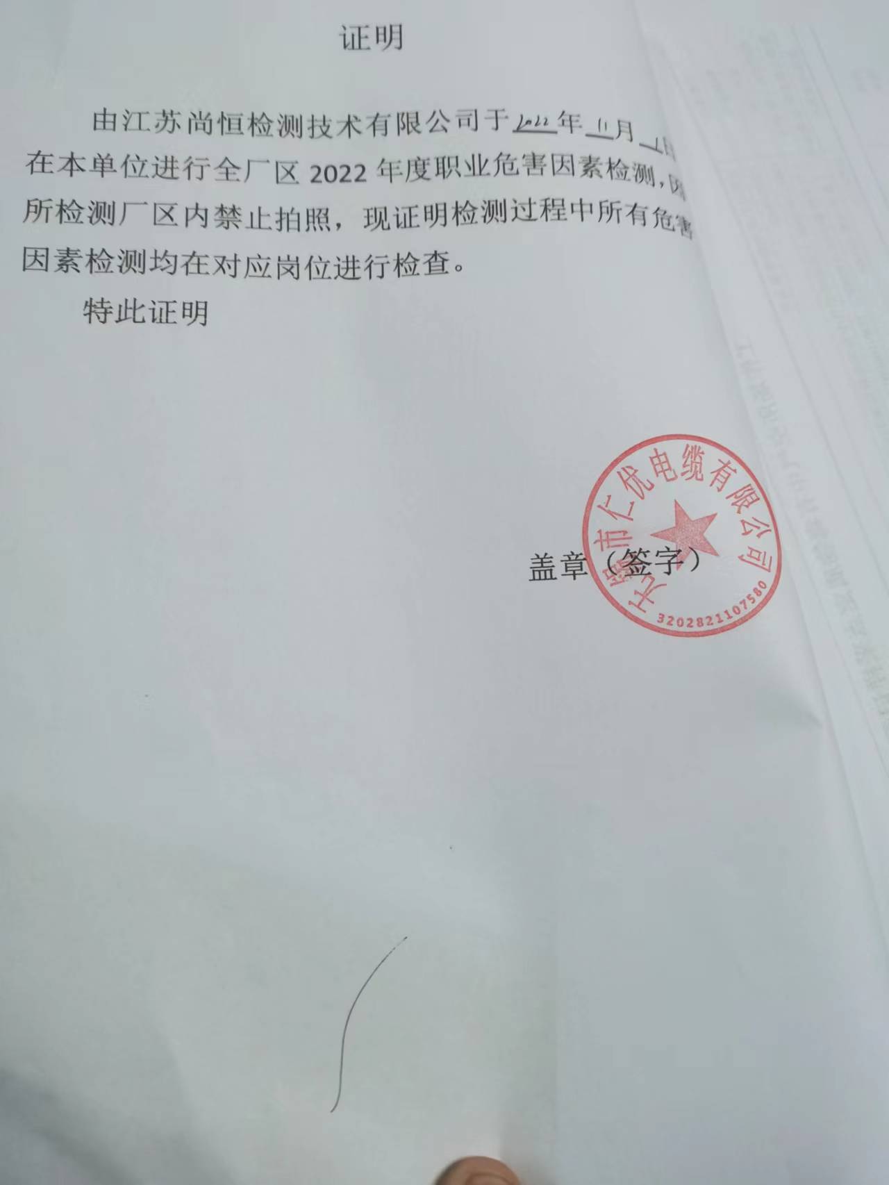 用人單位名稱 無錫協鑫塑料制品有限公司 用人單位注冊地址 無錫市錫山區鵝湖鎮彩橋村甘東路10號 聯系人 范少華 報告名稱及編號 職業病危害因素檢測報告 Z20250996 項目組人員 郭佳、羅燕平、周康、尚志華 現場調查人員 郭佳、羅燕平 現場調查時間 2025年10月24日 用人單位陪同人 范少華 采樣與測量人員 周康、尚志華 采樣與測量時間 2025年11月24日 用人單位陪同人 范少華 現場照片(現場調查及現場采樣與測量照片,含企業名稱或標識的合影照片) ? ? ? ? ?...