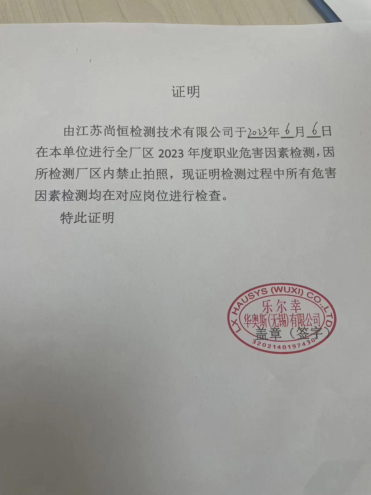 用人單位名稱 無(wú)錫力豐電氣有限公司 用人單位注冊(cè)地址 江蘇省無(wú)錫市新吳區(qū)碩放街道香楠路159號(hào) 聯(lián)系人 何婧 報(bào)告名稱及編號(hào) 職業(yè)病危害控效評(píng)價(jià)報(bào)告SH202504D015 項(xiàng)目組人員 管江楓、郭佳、羅燕平、丁文輝、王艷 現(xiàn)場(chǎng)調(diào)查人員 王艷、羅燕平 現(xiàn)場(chǎng)調(diào)查時(shí)間 2025年10月16日 用人單位陪同人 何婧 采樣與測(cè)量人員 周康、尚志華 采樣與測(cè)量時(shí)間 2025年10月29日至2025年11月3日 用人單位陪同人 何婧 現(xiàn)場(chǎng)照片(現(xiàn)場(chǎng)調(diào)查及現(xiàn)場(chǎng)采樣與測(cè)量照片,含企業(yè)名稱或標(biāo)識(shí)的合影照片) ? ? ? ?...